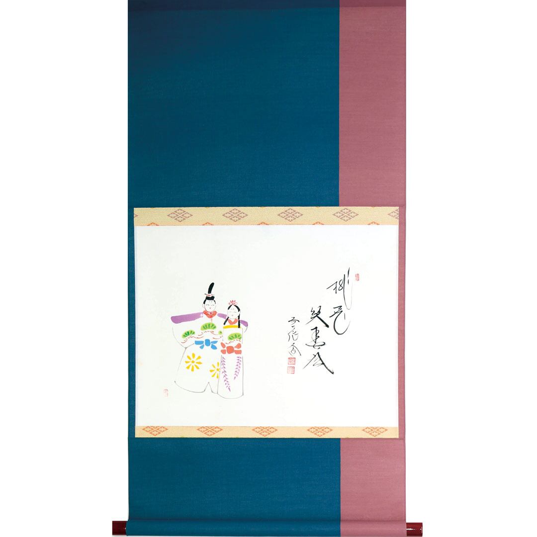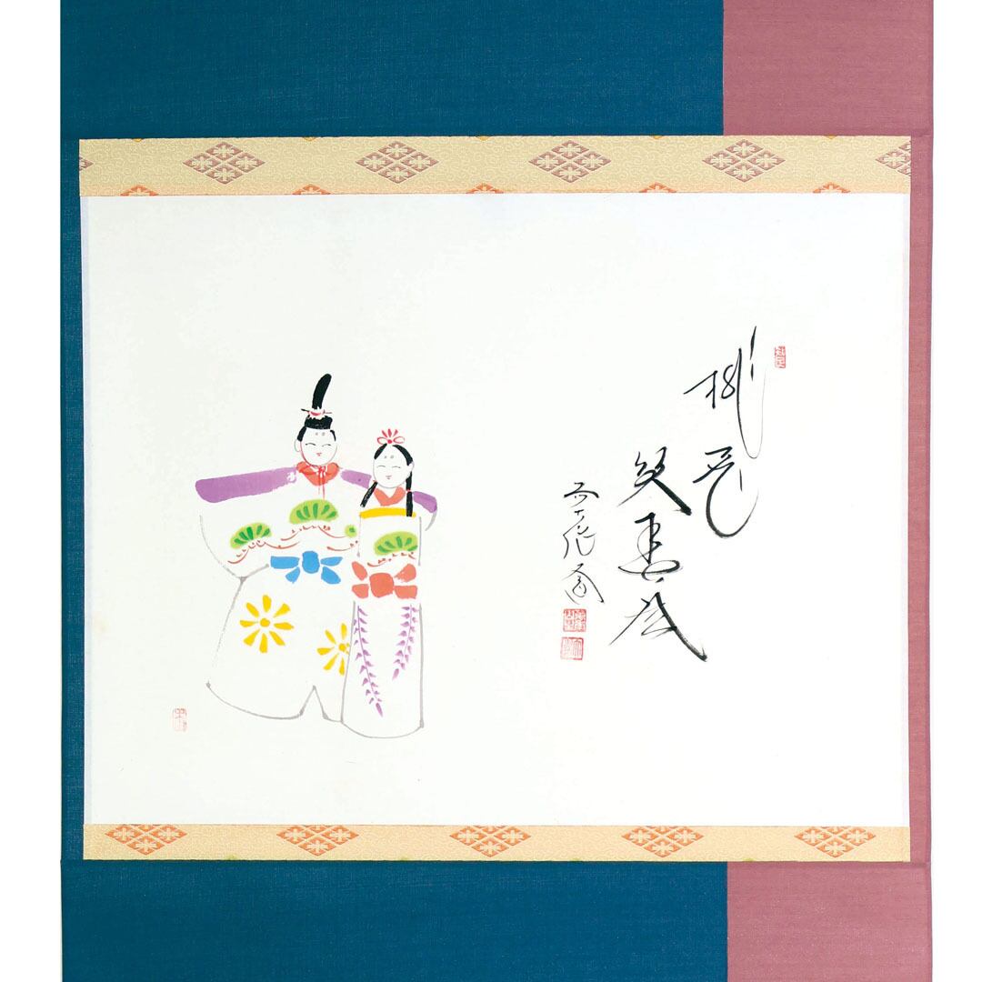 西垣大道 師 雛画賛横幅 桃花笑春風