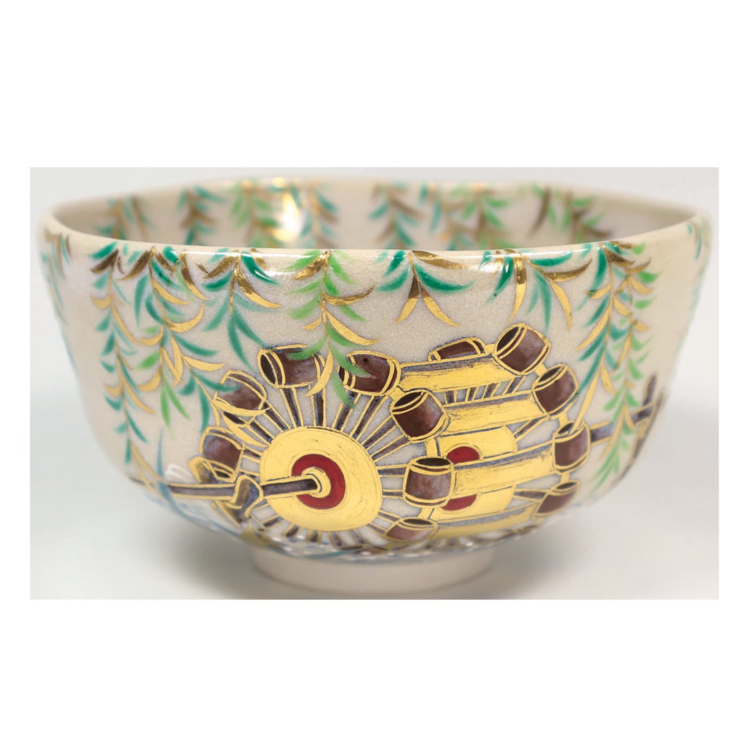 眞葛香斎 作 色絵 柳に水車 合茶碗
