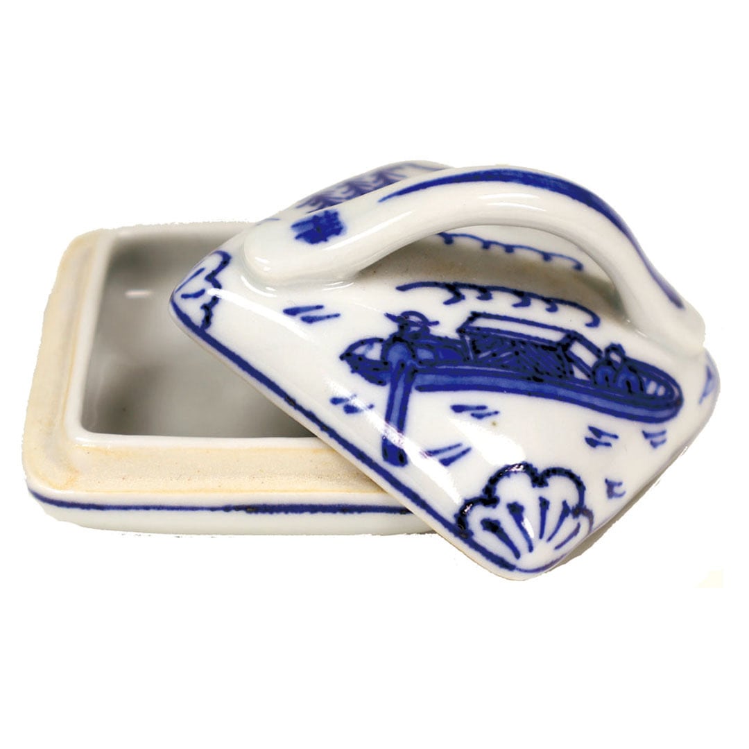 矢口永寿 作 九谷焼 染付 隅田川香合 久田宗匠 箱書付
