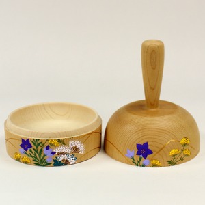 中川秀甫作の桧木地秋草蒔絵の砧香合(きぬた こうごう)です。