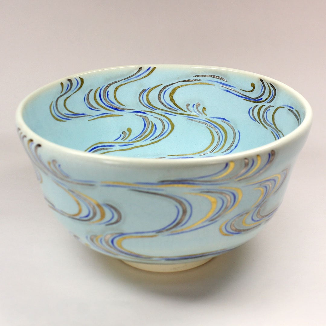 中村良二 作 青灰釉 流水茶碗