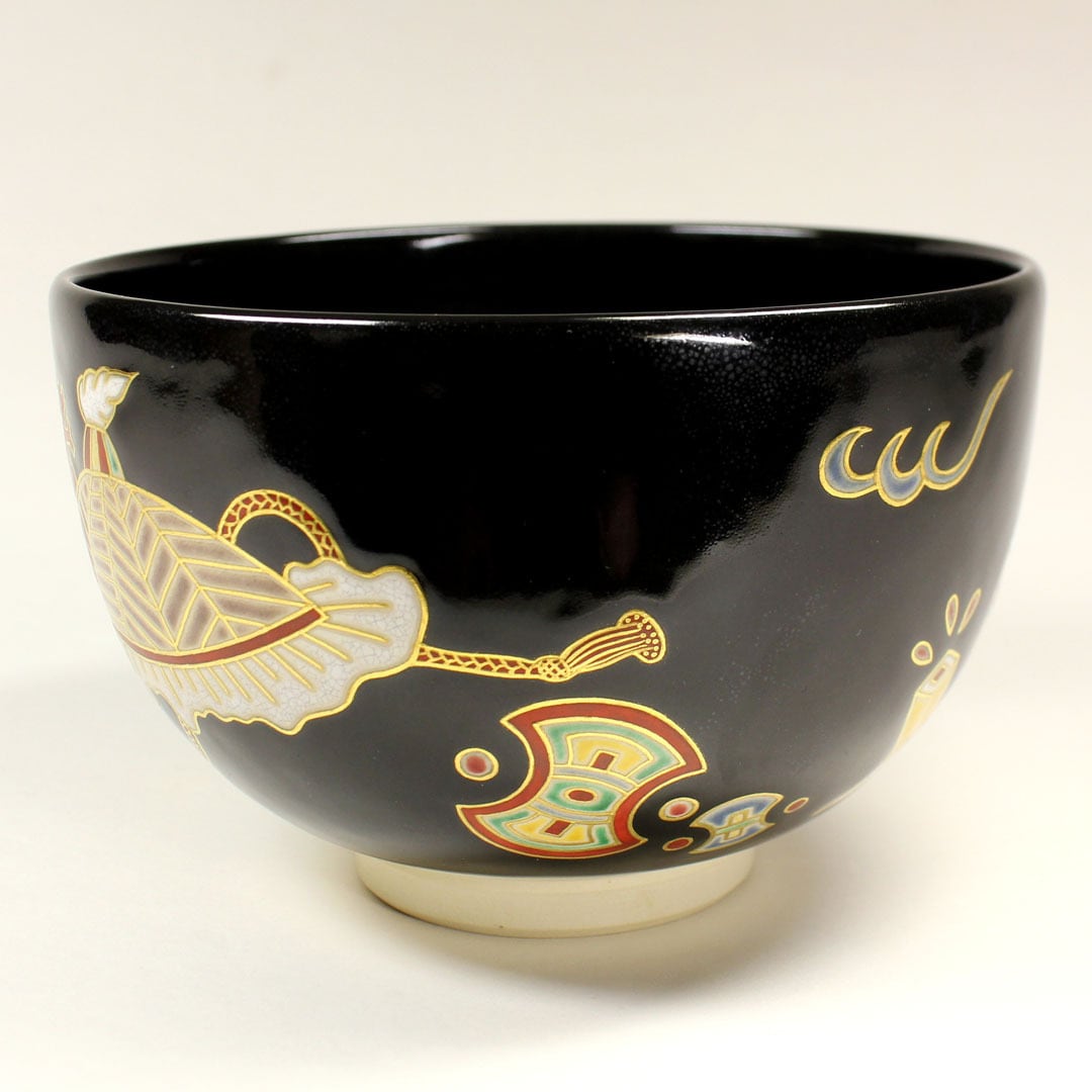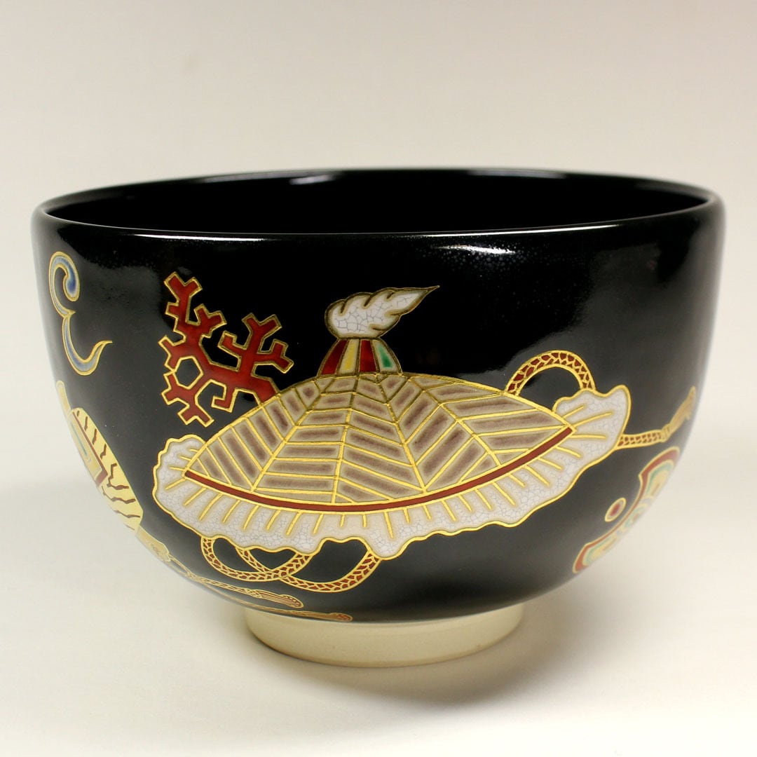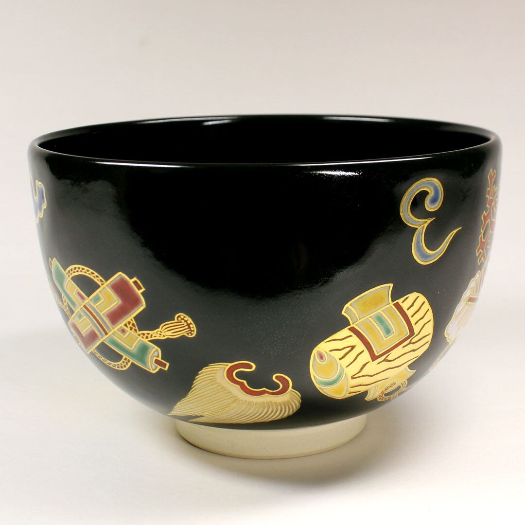 8代 高橋道八 作 黒釉 宝尽し茶碗
